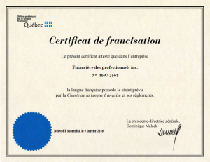 Nous vous invitons à prendre connaissance des certificats de francisation de fdp Gestion privée auprès de l’Office québécois de la langue française (OQLF).
