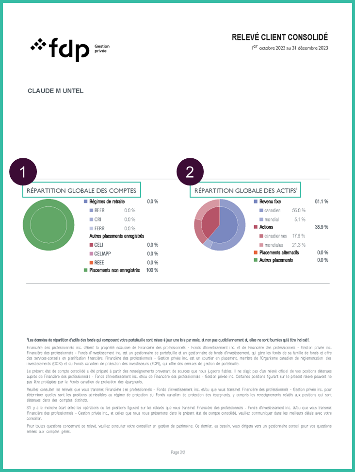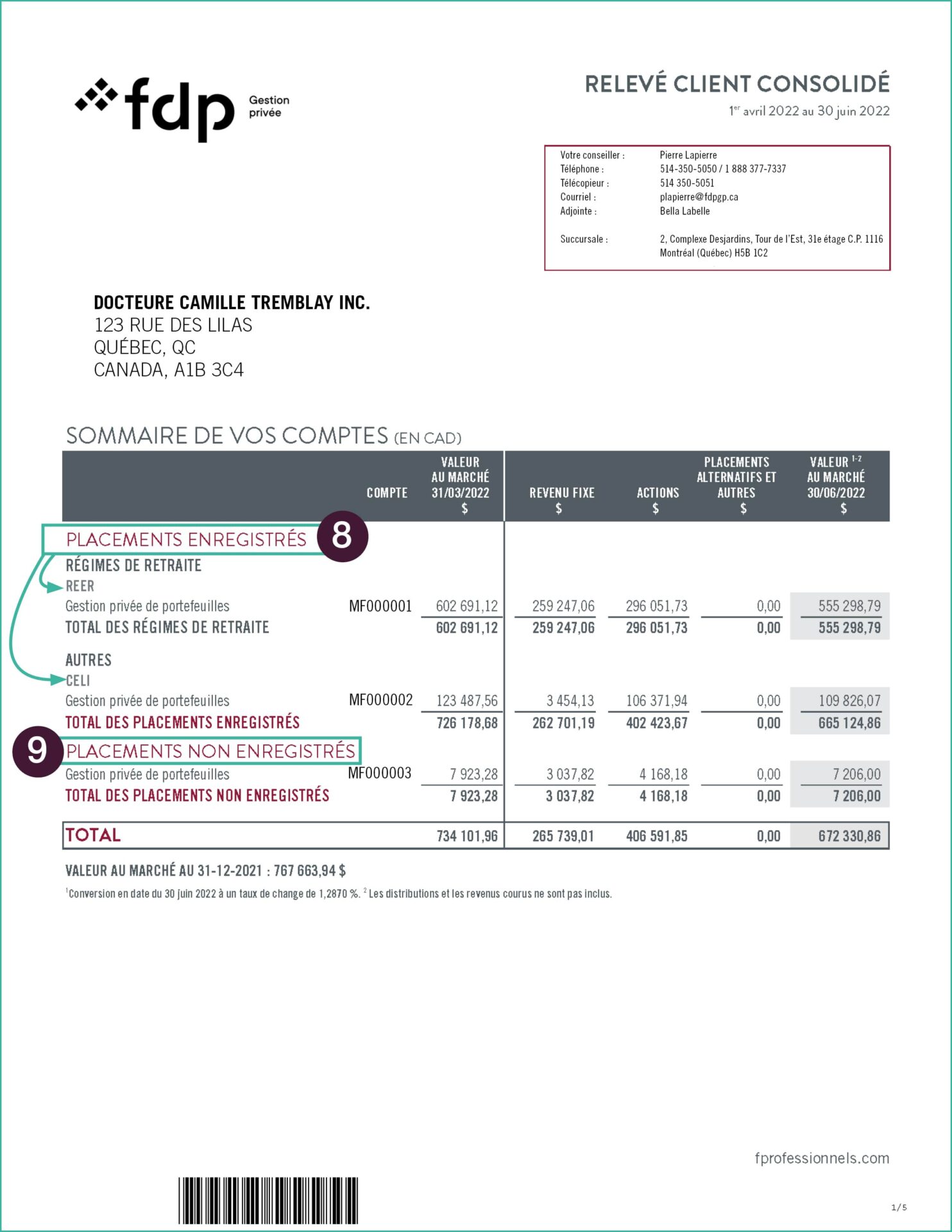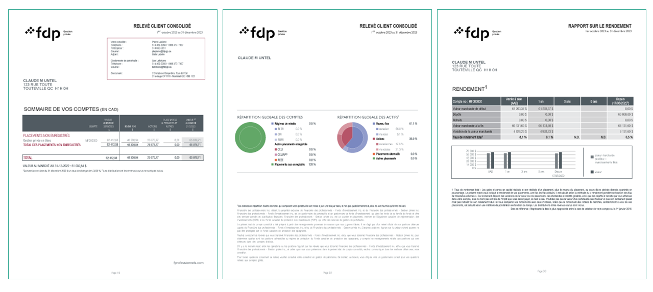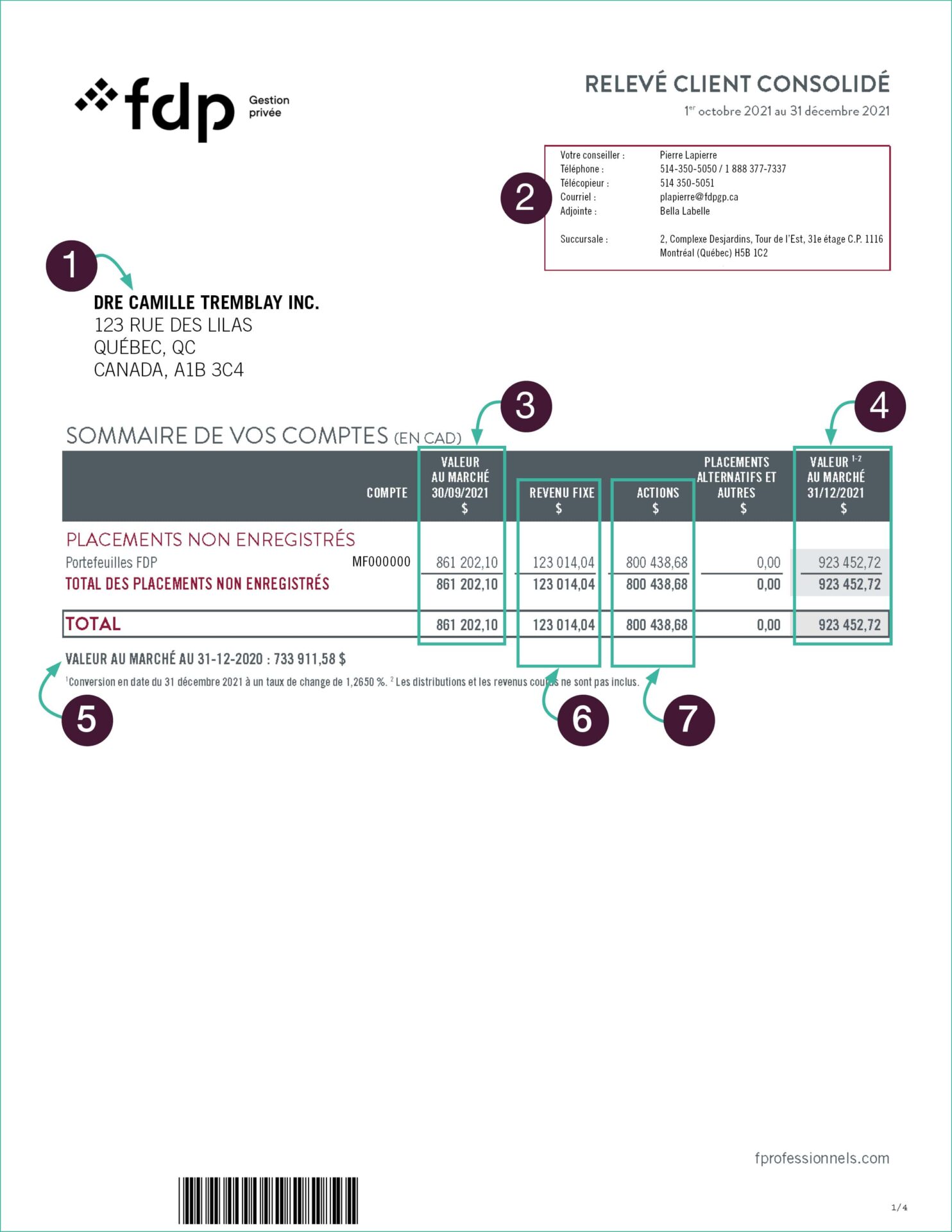 - On le nomme « consolidé » parce qu’on y réunit les informations d’un compte unique détenu chez fdp Gestion privée ou de plusieurs comptes d’un même détenteur.