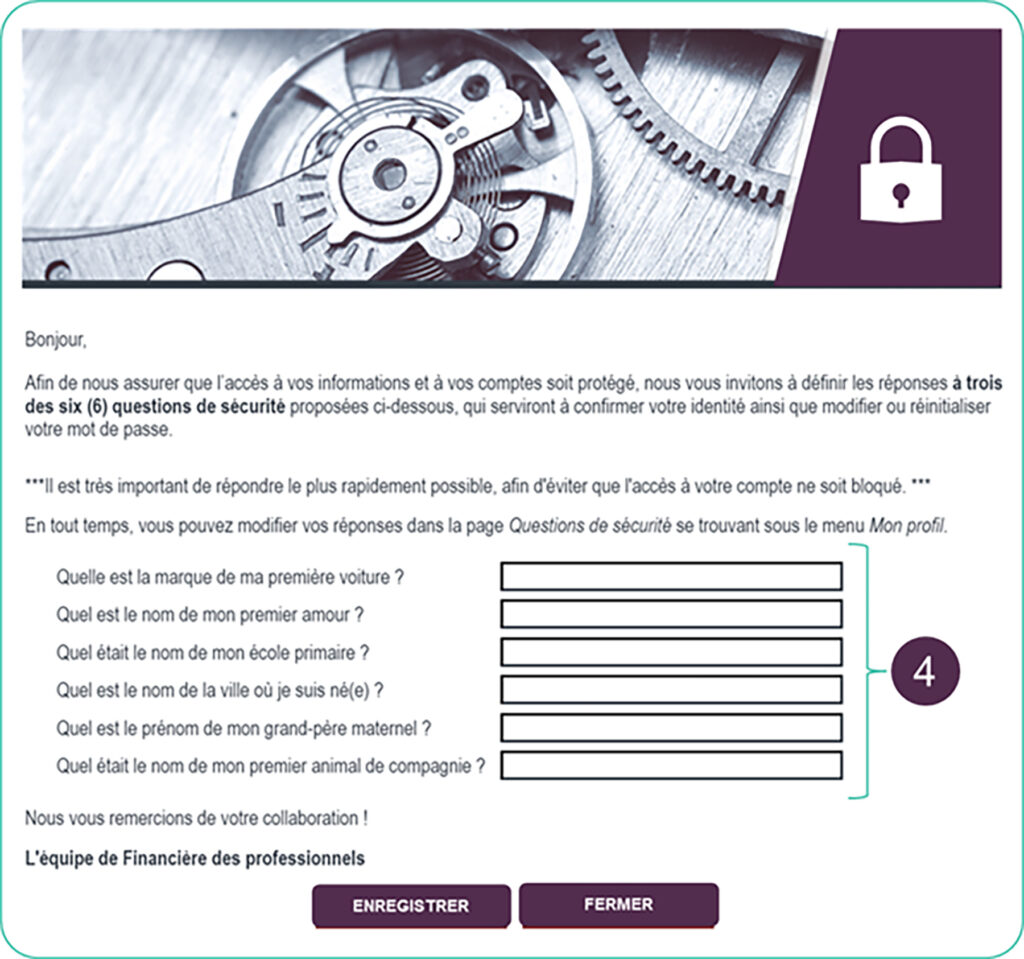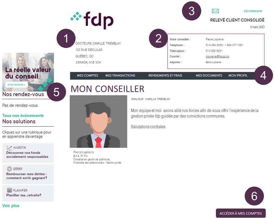 Vous avez accès à ces documents selon la préférence de communication déterminée avec votre conseiller ou conseillère (envoi postal ou accès en ligne dans votre Portail client). Indépendamment de votre préférence de communication, tous ces documents seront déposés dans votre Portail client.