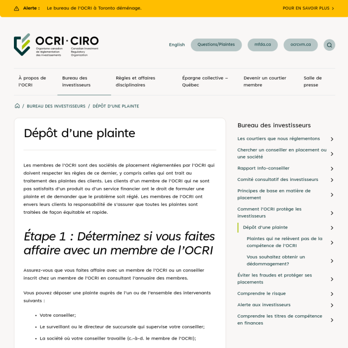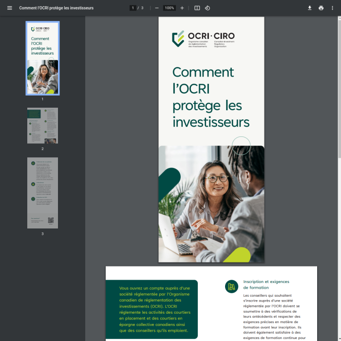Les organismes réglementaires du domaine financier publient régulièrement des informations destinées aux investisseurs. Prenez connaissance des différents mécanismes qui vous protègent dans les dépliants suivants.